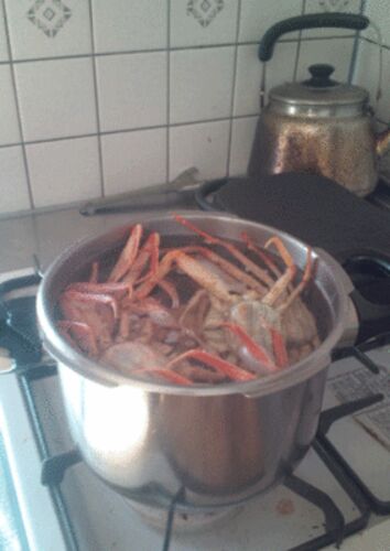 香箱ガニ調理中。