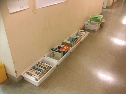臨時古本店はなかなか盛況で、何度か本を追加して現在こんな感じです。7割ぐらい売れました。 今週になってもまだ少しずつ新しい本を出しているので,一度見に来た人もぜひもう一度来て下さい。今週末まで営業いたします。 廊下に山と積まれていた段ボール…