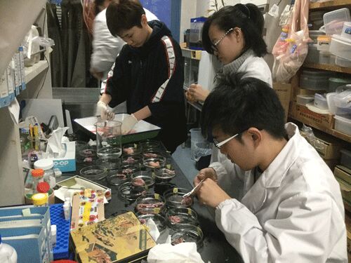 京都で大物解剖日。今日は4個体も解剖できるというので、なるべく大勢の学生に声を掛け、卒論でこのテーマをやる予定のTさんの他、最終的に5人の参加を得ることができました。この時期、M2と4回生は戦力外なので、他の研究室の学生にも参加してもらって機…