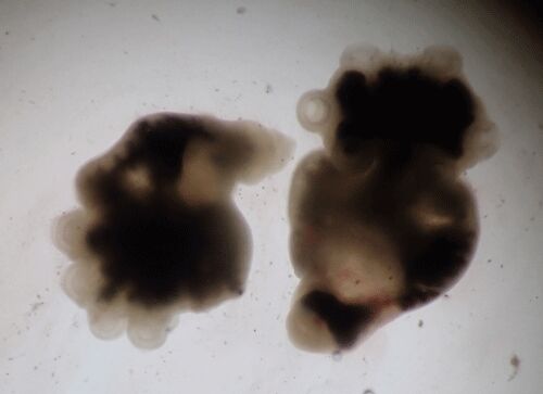昨日は共同研究のためA君とK大へ行き、1日中寄生虫探しをしました。A君のD論用サンプル以外に、ちょっと珍しいこんなムシも取れました。これはこの分類群の専門家のところへ送る予定です。 このムシは吸血性で、黒く見えているのは吸った宿主の血です。体全…