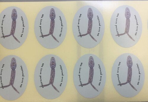 今年もオープンキャンパスに合わせて寄生虫シールを作りました(自腹)。去年の教訓から画像の彩度をぐっと上げて原図を作ったところ、まあまあうまくできました。図柄はオオサンショウウオ吸虫Liolope copulansのセルカリアです(「湖と川の寄生虫たち」の…
